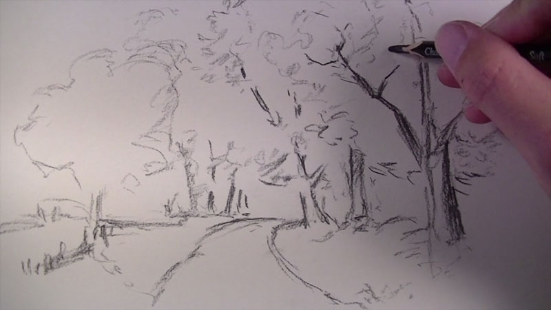 How To Draw With Charcoal Pencils A Landscape Sketch